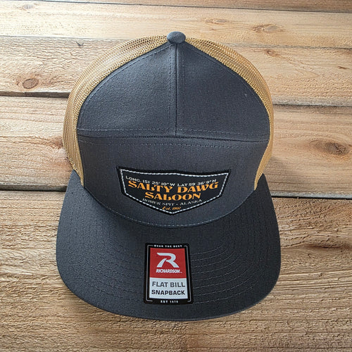 7 Panel Flat Front Cap Charcoal and Old Gold