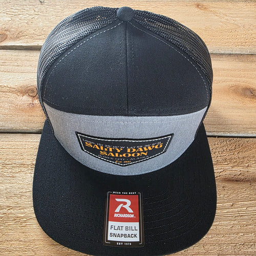 7 Panel Flat Front Cap Heather Gray and Black